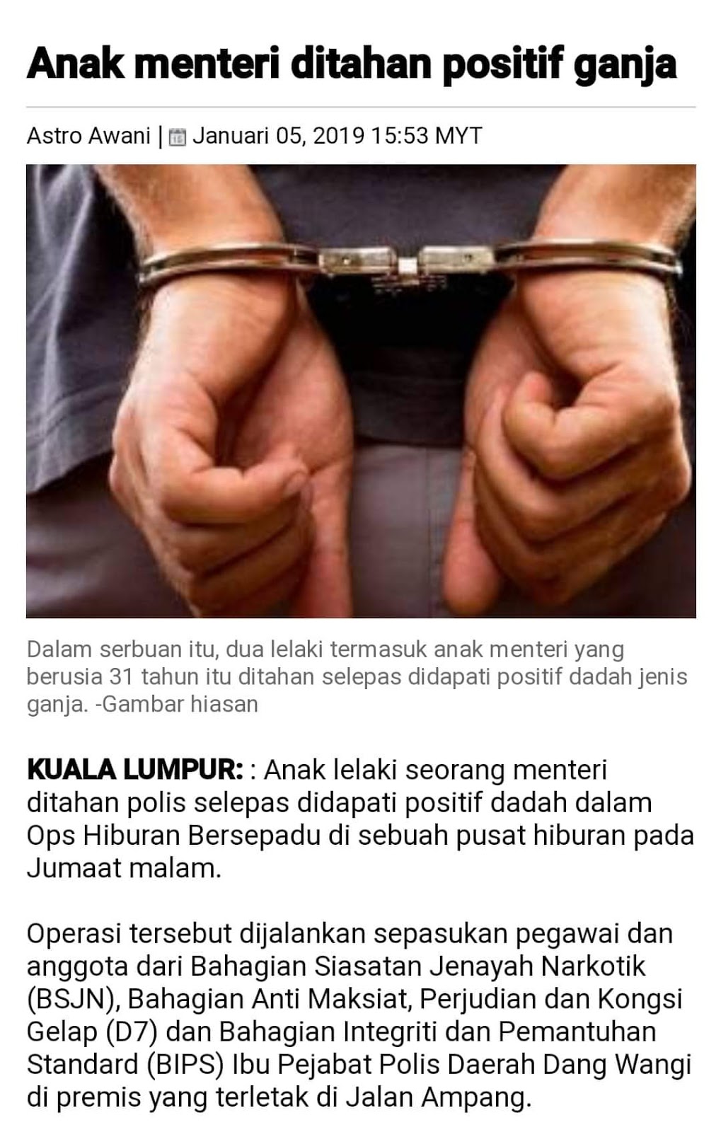 Anak Menteri Pertahanan Ditahan Terlibat Dengan Ganja Isu Isu Politik Terkini Di Malaysia