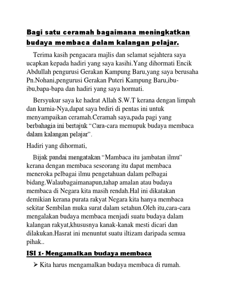 Bagi Satu Ceramah Bagaimana Meningkatkan Budaya Membaca Dalam Kalangan Pelajar Docx