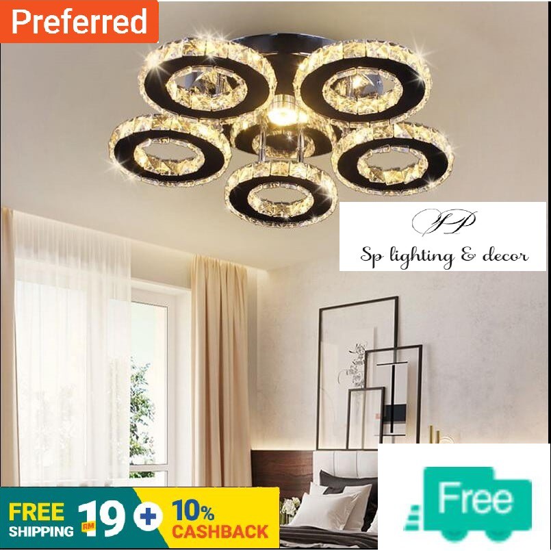 037 New Version 2020 Moden Lampu Hiasan Siling Led Kristal 5 Cincin Deco Ceiling Light Crystal Rings By Splighting Shopee Malaysia
