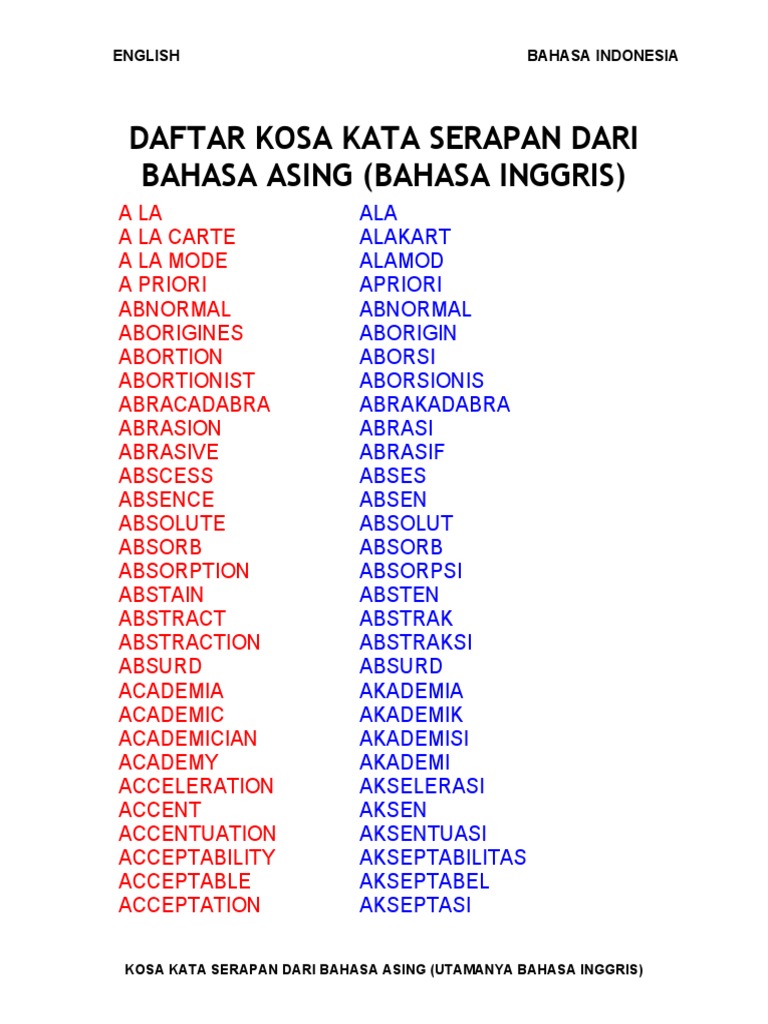 Daftar Kosa Kata Serapan Pdf