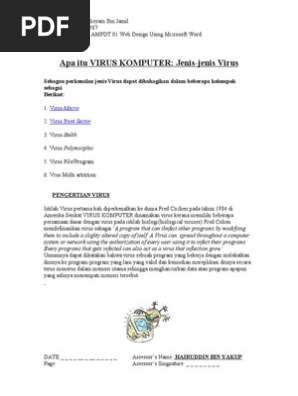 Doc Pengertian Dan Jenis Jenis Virus Pada Komputer Dedy Setiawan Academia Edu