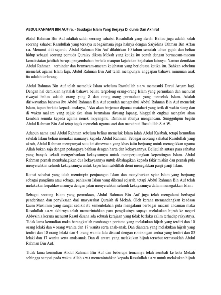 Pdf Rriwayat Abdul Rahman Bin Auf Isromi Janwar Academia Edu