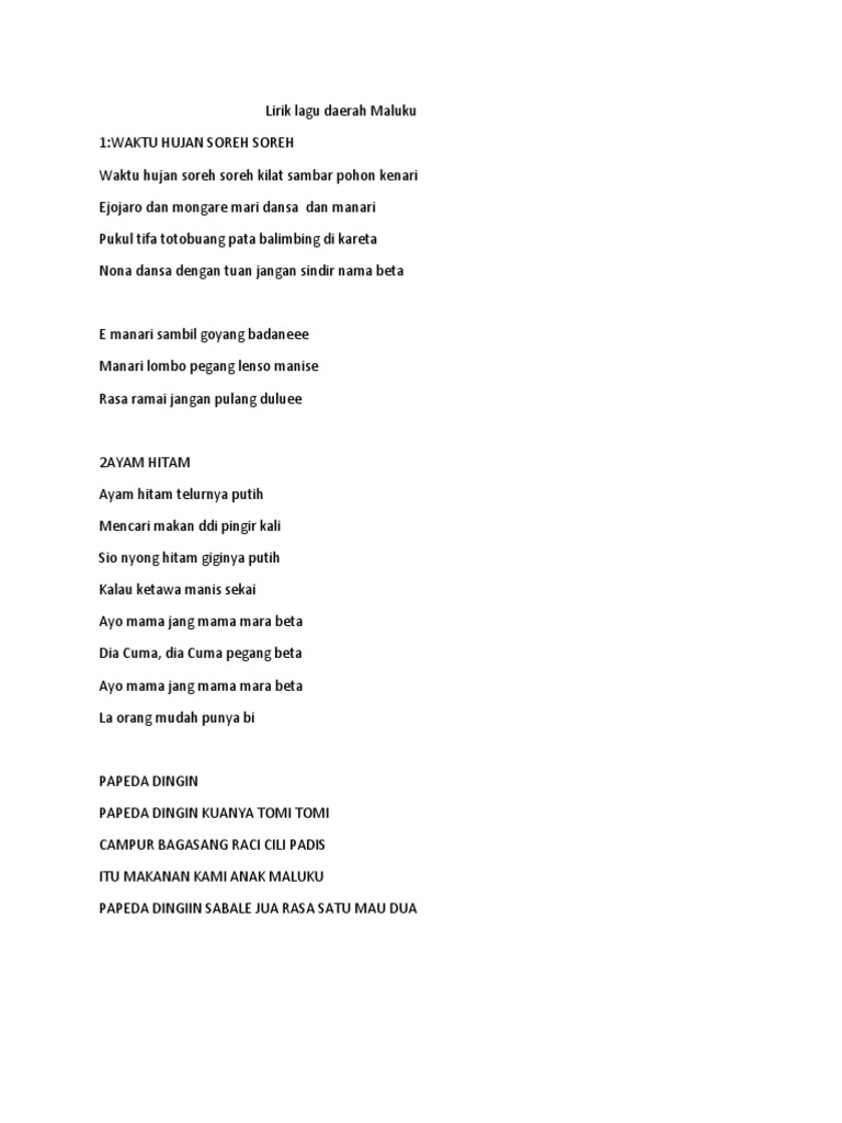 25 Lirik Lagu Daerah Maluku
