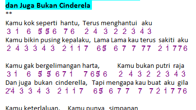 Not Angka Lagu Kamu Bukan Putri Raja Dan Juga Bukan Cinderela Dunia Lirik Not Lagu