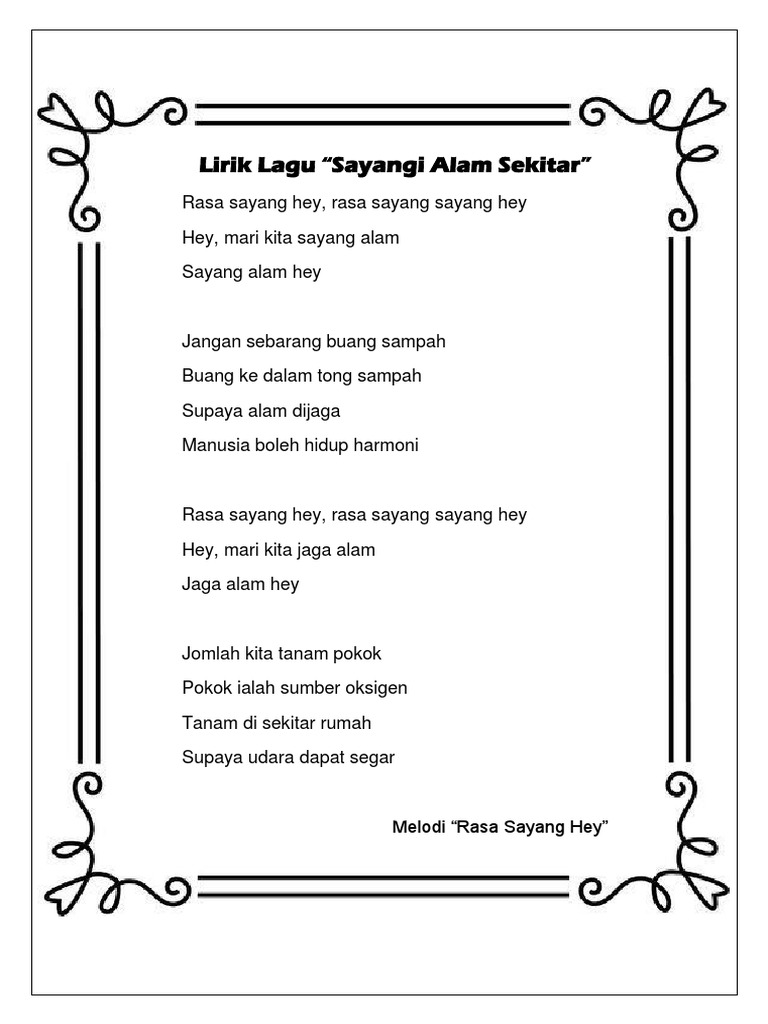 Lirik Lagu Sayangi Alam Sekitar
