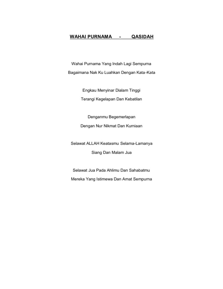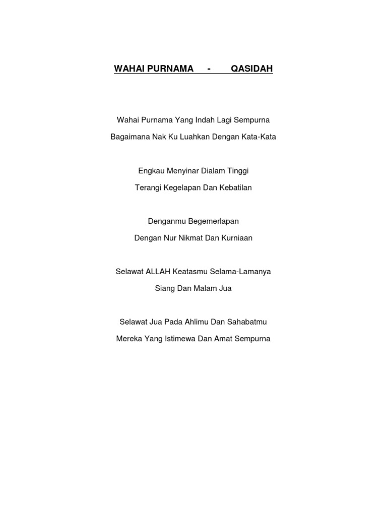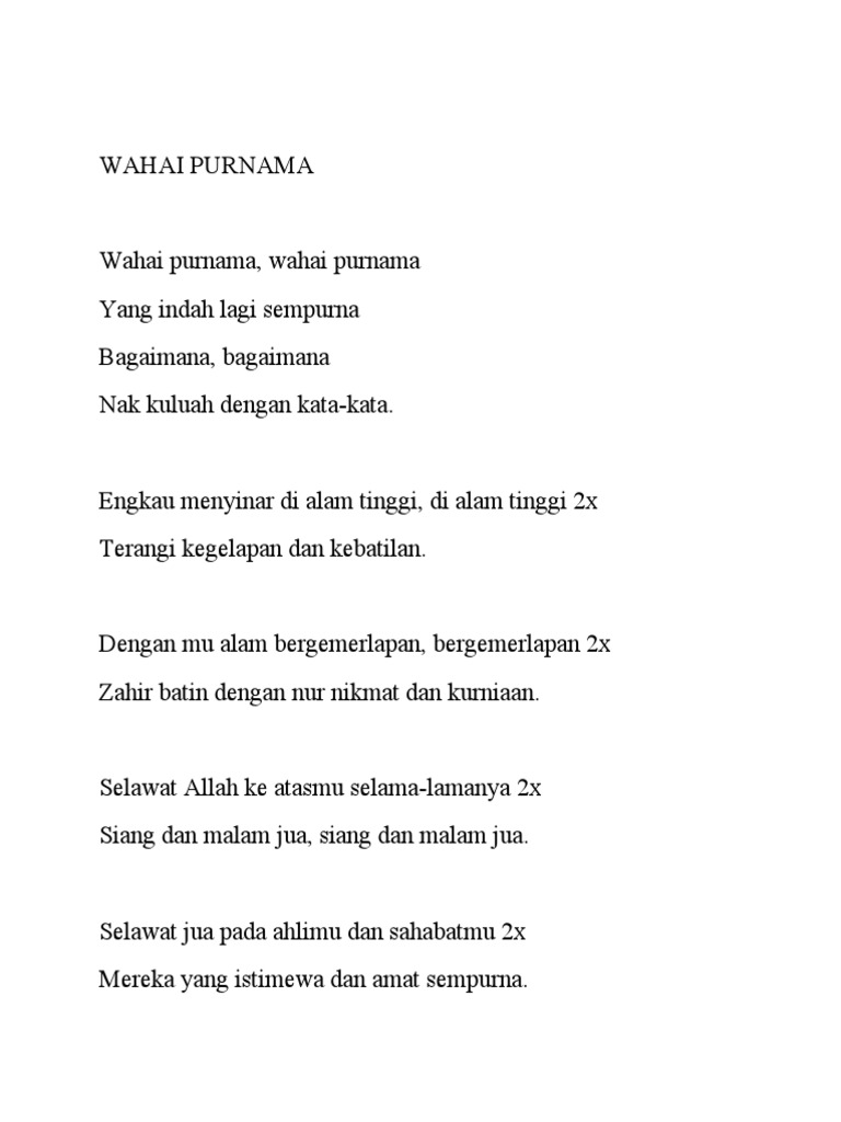 Lirik Nasyid Ya Badrotim Versi Melayu Wahai Purnama