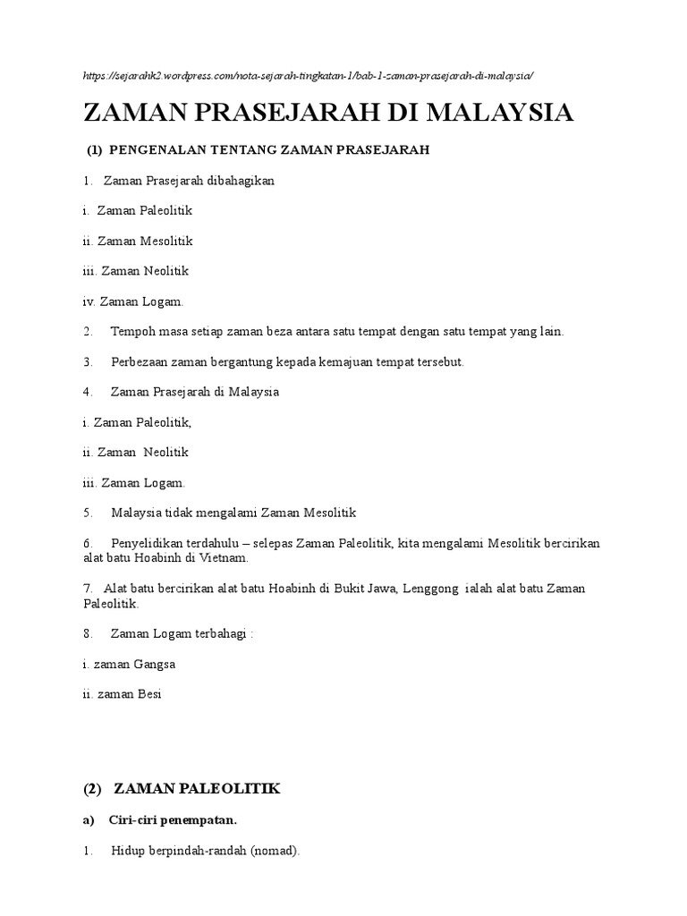 Sejarah Tingkatan 1 Bab 2 Zaman Prasejarah Di Malaysia