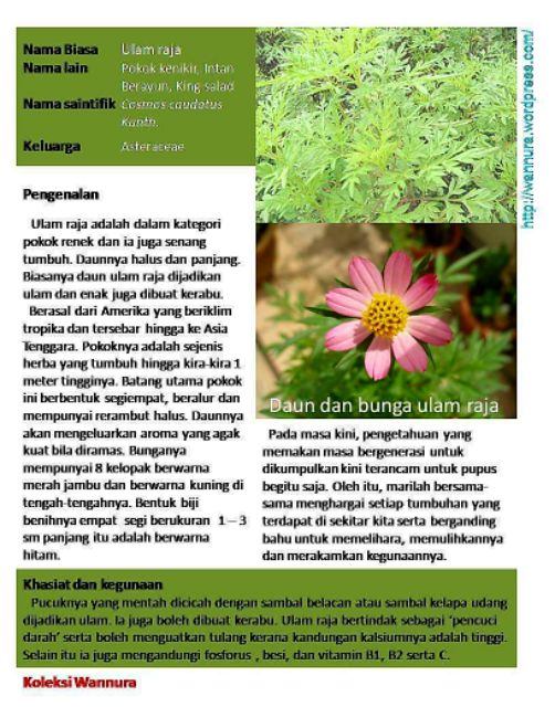 Pokok Ulam Raja Segalanya Tentang Tumbuhan