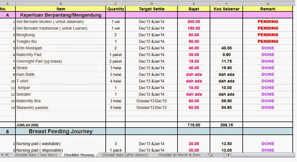 Faiza Faizul Barang Barang Keperluan Ibu Dan Bakal Bayi Dibawa Ke Hospital Baby Checklist Baby Bumps Excel Calendar