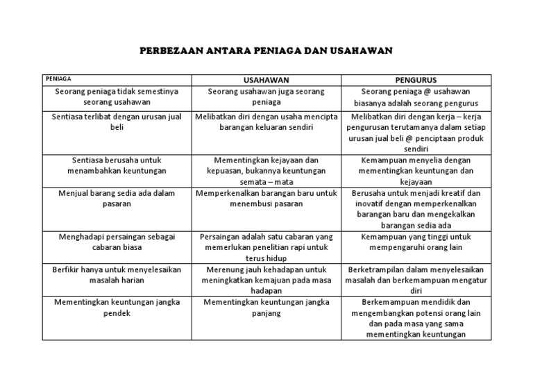 Usahawan Malaysia Perbezaan Konsep Usahawan Dan Peniaga