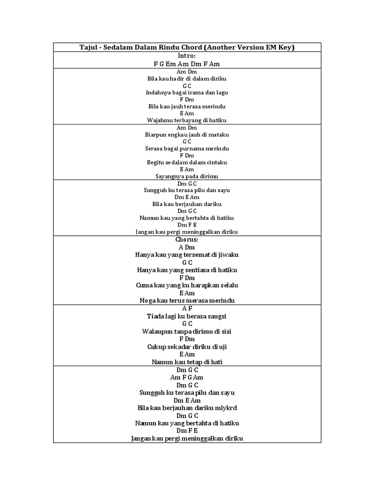 Tajul Sedalam Dalam Rindu Chord Another Version Em Key