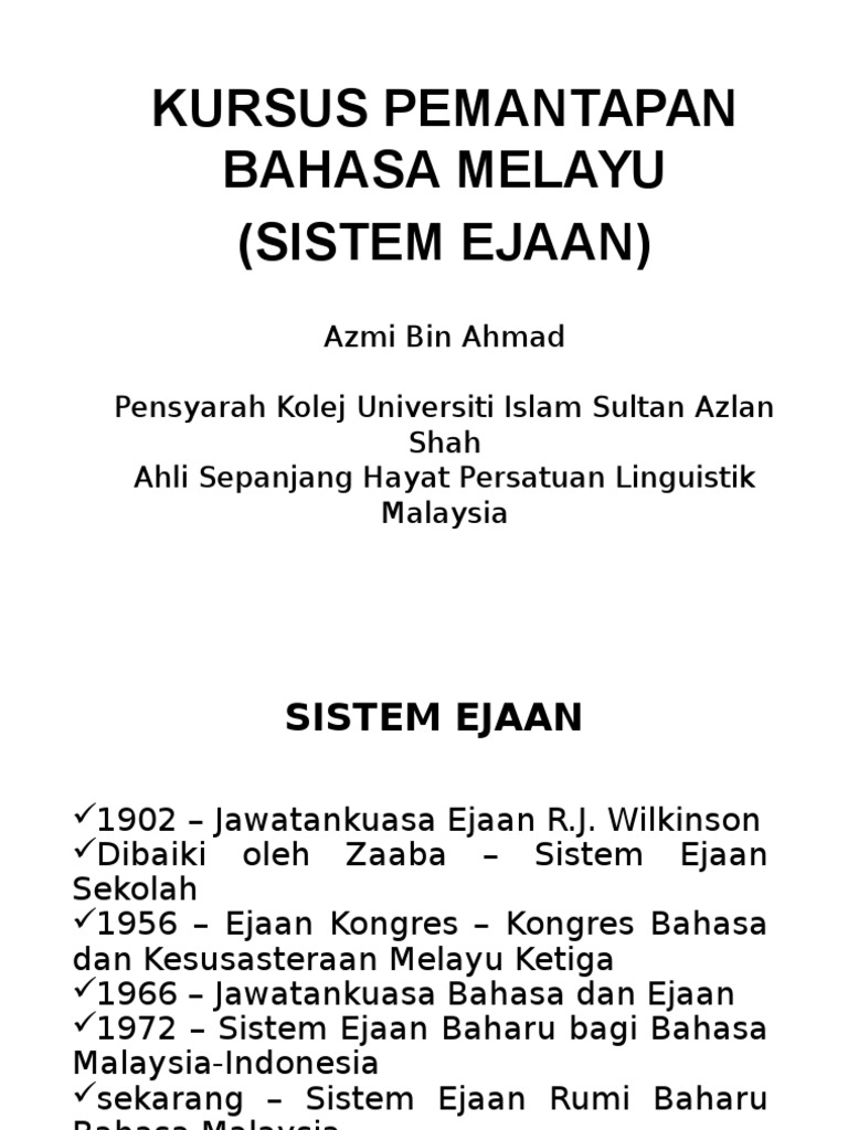 Sistem Ejaan Melayu Ppt Kronologi Penyeragaman Ejaan Bahasa Melayu U2022 Ditmbulkan Persoalan Ejaan Dalam Kongress Bahasa Dan Persuratan Melayu Course Hero