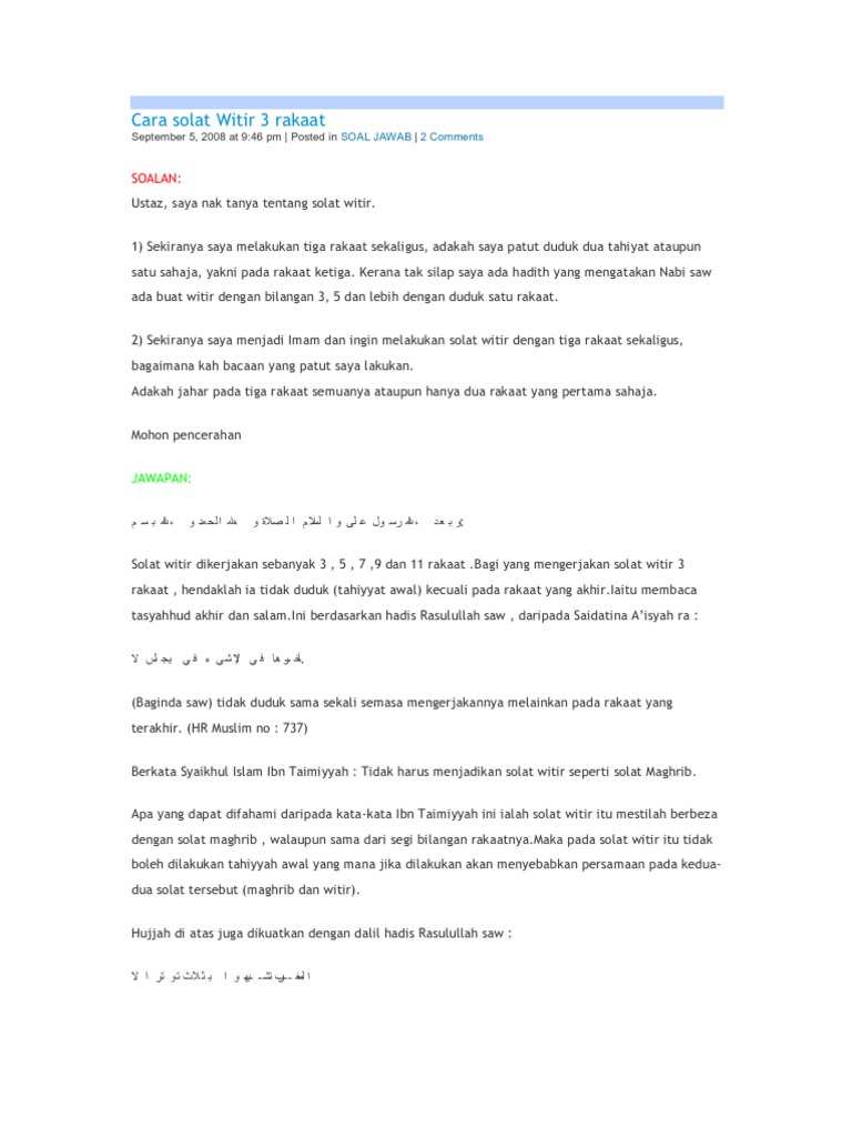 Cara Solat Witir Yang Mudah Dari Jakim Bacaan Ringkas