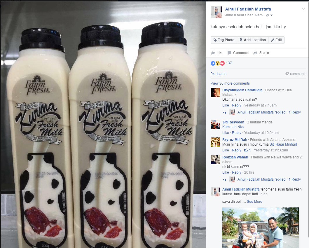 Susu Kurma Farm Fresh Untuk Aiza Zila Mahadi