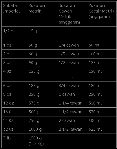 Rujukan Masakan Kadar Tukaran Unit Sukatan Dalam Masakan