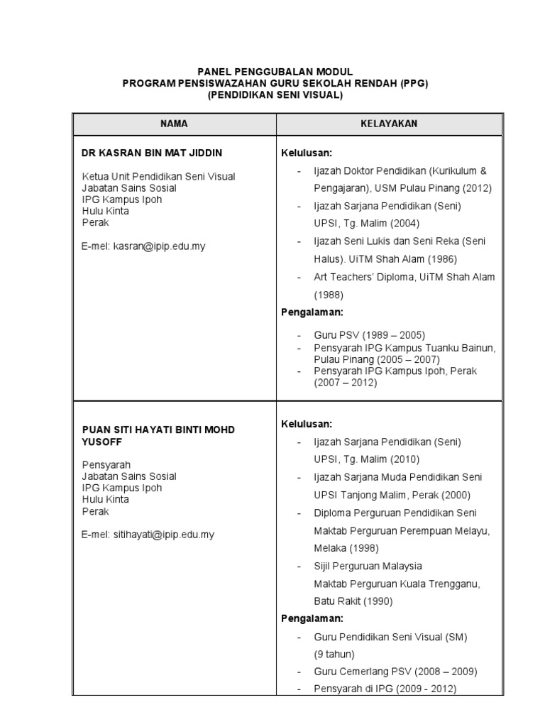 Panel Penggubalan Modul Program Pensiswazahan Guru Sekolah Rendah Ppg Pendidikan Seni Visual