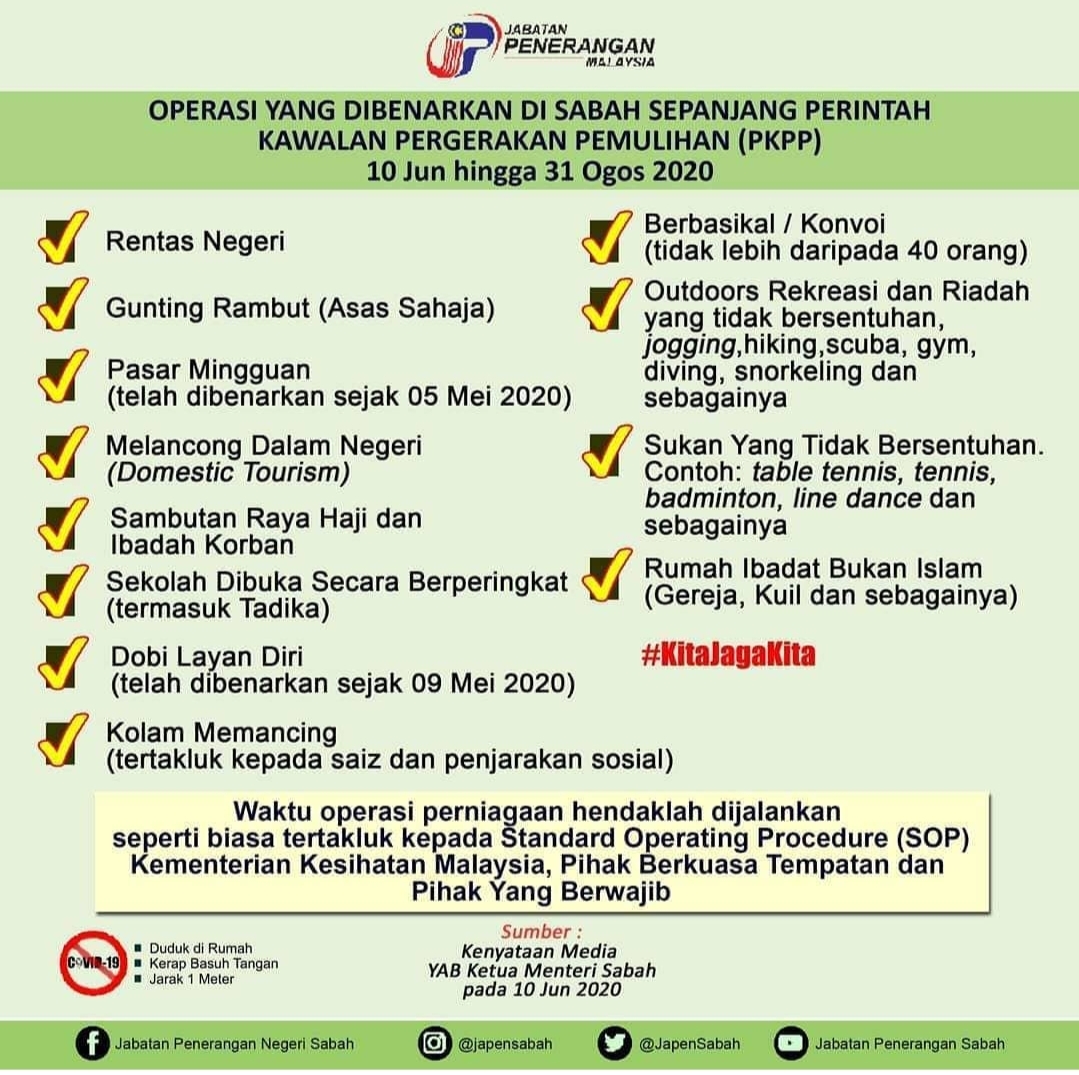 Aktiviti Aktiviti Yang Dibenarkan Dan Tidak Dibenarkan Di Sabah Semasa Pkpp